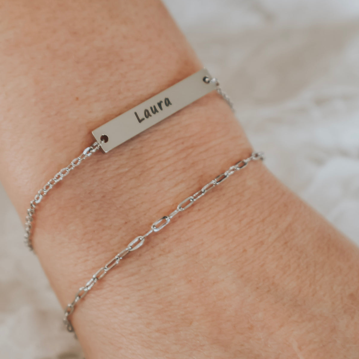 Simple and dainty bracelet with your choice of names or dates. Limited to 16 characters including spacing